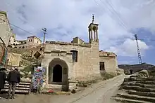Çavuşin is a village in the Avanos District in Nevşehir Province in the Cappadocia region of Turkey.[1] Its population is 421 (2022).[2] It is on the road between Avanos and Göreme, about five kilometres north of Göreme. The older part of the village lies on and around a large ridge of tock visible for miles around. Most of the modern homes are closer to the main road where villagers were rehoused in the early 1960s amid fears that their old homes might collapse.[3] Until recently Çavuşin was more or less ignored by tourism despite its proximity to the Göreme honeypot. However, in the 2010s more hotels opened in Cavuşin too, especially in the older part of the village.