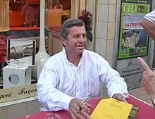![]() Loubet signing books in 2015 | |