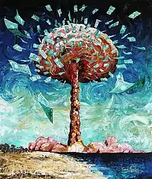 Although usually representing scenes of traditional Polynesian life, Chaussoy also takes positions on current issues and uses his painting to convey messages. In 2018, he painted the satirical work entitled “Moruru roa”, a play on words between “Moruroa” (an atoll used by the French for nuclear testing) and “Mauruuru roa” (“Thank you very much” in Reo Tahiti). He is also committed to the environment by denouncing maritime pollution with his series of paintings “Coming from the sea”, “Paradise on borrowed time” where he illustrates the threat of rising water levels and his participation in World Art Day for the exhibition “Water Peoples”.[9]
