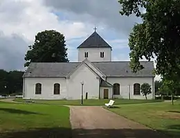 The church originally consisted of a nave, a chancel and an apse, and was built during the 12th century. The broad tower was added in the 13th century. The church contains the graves of the Ramel family, lords of nearby Maltesholm Castle. During the 18th century a north transept arm was added, and during substantial reconstruction works in the 1860s another transept arm was added to the south. The apse was demolished at the same time, and the nave heavily rebuilt; today only the tower and the chancel are preserved from the medieval church. A renovation was carried out in the 1960s, and at this time the medieval murals in the chancel were restored.[1][2]