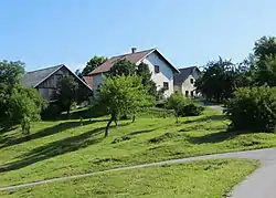 Čohovo is a clustered village on the southwest slope of Čoh Hill (Čohov grič, 870 meters or 2,850 feet), which is covered in needleleaf forest. It stands along the road from Osredek to Ravne. Beden Spring lies below the village toward the Iška River and was used in the past for as a water source for the village. Štembuh Spring, located near the wayside shrine in Čohovo, was outfitted with a trough for watering animals.[4]