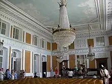 Another first-floor apartment, consisting of a salon, bedroom and bathroom, is the Chinese Apartment. It features a lowered ceiling, and combines classicist elements and far eastern patterns, with classicist and English furniture in a Chinese style. On the first floor, we can also see a complex of classicist reception rooms created for the Duchess, among those the most noteworthy two-storey Ballroom, ornamented with honey-coloured, polished wood carvings, and white engravings in the overdoor and frieze parts, all by Bauman; the Great Dining Room and chapel were all designed by Chrystian Piotr Aigner and Bauman.