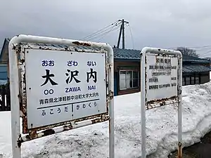 Ōzawanai Station (大沢内駅, Ōzawanai-eki) is a railway station on the Tsugaru Railway Line in the town of Nakadomari, Aomori, Japan, operated by the private railway operator Tsugaru Railway Company.