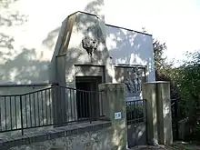 Ladislav Šaloun had the studio built when he won the commission for the gigantic Jan Hus Memorial as he needed a large space to create the asymmetrical memorial that now stands in Old Town Square in Prague.[1] The memorial that became a symbol of Czech self-government was dedicated to Jan Hus who was burned as a heretic in 1415 after refusing to recant his independent views.[2] Šaloun part designed the Art Nouveau villa and there he enjoyed visits from the Czech intelligentsia. Visitors included the painter Alphonse Mucha, the soprano Emmy Destinn, Karel and Josef Čapek, the violinist Jan Kubelík and his son Rafael Kubelík the conductor[3] and Otokar Brezina the poet.[4]