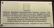 Plaque to commemorate the insurrection fights of the Żniwiarz Group in Marymont