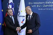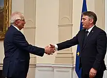 On 30 September 2021, Komšić, Džaferović and Dodik met with European Commission President Ursula von der Leyen at the Presidency Building in Sarajevo.[67] This was part of von der Leyen's visit to Bosnia and Herzegovina, since she some hours before opened the Svilaj border checkpoint and a bridge over the nearby Sava river, which bears the internationally important freeway Pan-European Corridor Vc.[68]