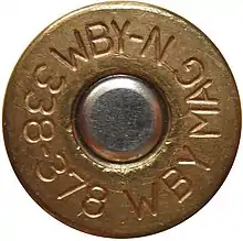 The .338-378 Weatherby Magnum is based on the .338-378 KT, a wildcat cartridge created by Elmer Keith and R.W. "Bob" Thomson in 1966.[2] The KT is based on the .378 Weatherby Magnum cartridge but is shorter by 1/4" and necked down to a .338 caliber bullet.[3] This design was chosen for elk hunting, using the powders available at the time, such as Hodgdon H-4831.[4] Due to the continued popularity of the KT, Weatherby introduced the .338-378 Weatherby Magnum in 1998 to its line of commercial ammunition, using a full-length 2.908" case.[5] Although based on the .338-378 KT, the .338-378 Weatherby Magnum and the KT have different load data and chamber sizes and are not interchangeable.[6]