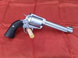 The .500 Maximum, also known as the .500 Linebaugh Maximum and .500 Linebaugh Long, is a revolver cartridge developed by John Linebaugh. Only a small number of custom made 5-round single-action revolvers, such as the BMF .500 Maximum manufactured by Gary Reeder Custom Guns, the Ruger Bowen .500 Maximum manufactured by Bowen Classic Arms Corporation and revolvers manufactured by John Linebaugh or Jack Huntington, are being chambered for this round, with a barrel length of up to 6.5" with no muzzle brake or ports.