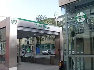 1º de Mayo (English: 1 May) is a station of the Seville Metro on line 1.[1] It is located at the intersection of Federico Mayo Gayarre and Ronda del Tamarguillo avenues in the district of Cerro-Amate. 1º de Mayo is an underground station situated between Gran Plaza and Amate on the same line. It was opened on 2 April 2009. It is expected that by 2017 the station will have a connection with line 4 of the subway (that it is still in planning phase).