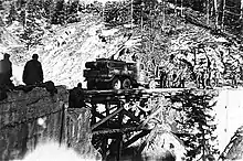 On 29 November the battalion motor convoyed to Nice, France. From 30 November 1944 to 23 March 1945 it was attached to the 44th AAA Brigade, in support of the famed Japanese-American 442nd Regimental Combat Team, and later the Puerto Rican 65th Infantry Regiment on combat duty in the Maritime Alps, on the southern Maginot Line above Nice and Menton. While there the 3rd platoon of Company A built a timber trestle bridge under fire, naming it in honor of Pfc. George I. Bernay, the first among the unit to be killed in action (7 December 1944).[4]
