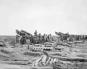 The British artillery was repositioned after the battle, 148th Siege Bty pulling out on 10 June to join II Corps in the Dikkebus area with Fifth Army, where it joined 66th HAG on 17 June.[12][29][43] On 22 June 356th Siege Battery joined II Corps. This battery had been raised at Harwich from a nucleus provided by details of the Essex & Suffolk RGA. It arrived with four new Mark II 9.2-inch howitzers, which it was ordered to hand over to 148th Siege Bty. 356th Siege Bty was then split up to reinforce other batteries, including 76th Siege Bty, also formed by the Essex & Suffolk RGA.[9][12][44]