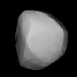 Nuwa (minor planet designation: 150 Nuwa) is a large main-belt asteroid with an orbital period of 5.15 years. It was discovered by Canadian-American astronomer James Craig Watson on October 18, 1875,[6] and named after Nüwa, the Chinese creator goddess. This object is a candidate member of the Hecuba group of asteroids that orbit near the 2:1 mean-motion resonance with Jupiter.[7] Based upon the spectrum it is classified as a C-type asteroid,[8] which indicates that it is probably composed of primitive carbonaceous chondritic material and the surface is exceedingly dark.