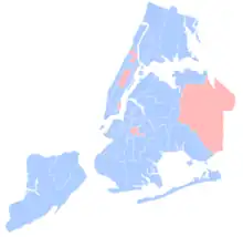 - 12th, 13th, 14th, 15th, 16th, 17th, 18th, 19th and 20th District: Parts of New York County, i.e. the Borough of Manhattan