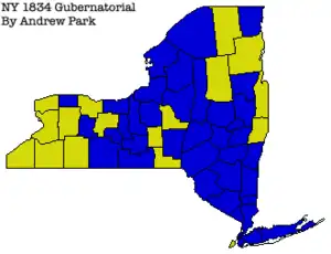 The 1834 New York gubernatorial election was held from November 3 to 5, 1834 to elect the Governor and Lieutenant Governor of New York. This was the first fall election in which the Whig Party participated.