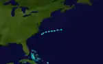{{cite book}}:|work=ignored (help) - ↑ Documentation of Atlantic Tropical Cyclones Changes in HURDAT (Report). National Oceanic and Atmospheric Administration, Atlantic Oceanographic and Meteorological Laboratory, Hurricane Research Division. 2008. Retrieved March 5, 2014.