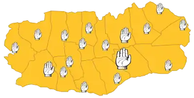 Overall, there were 94 to 100 deputies. Accounts differ because of the unspecified number of supplementary seats for the Wallachian clergy, which now enfranchised priests and stareți. The bishops were members by right; clergy also elected 6 or 10 deputies altogether—4 of which represented the high clergy.[76] Outside the church class, there were 90 Divan deputies, representing the 17 counties, with at least one deputy per county capital and at least 4 from the rural constituencies. Dolj and Prahova had 6 deputies each, and Ilfov had 8, 4 of them representing Bucharest.[77]