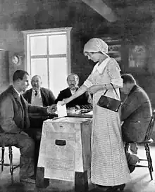 Parliamentary elections were held in the autonomous Grand Duchy of Finland on 15 and 16 March 1907.[1] They were the first parliamentary election in which members were elected to the new Parliament of Finland by universal suffrage and the first in the world in which female members were elected.