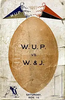 - ↑ "WUPs and Wash-Jeffs Both Confident on eve of Supreme Football Struggle". The Pittsburgh Post. November 16, 1907. p. 7 – via Newspapers.com.