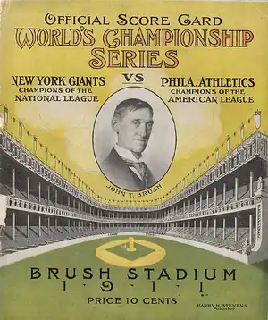 - ↑ "1911 World Series Game 1 – Philadelphia Athletics vs. New York Giants". Retrosheet. Retrieved September 13, 2009.