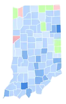 | Vanderburgh | 7,219 | 41.12% | 4,839 | 27.56% | 2,738 | 15.59% | 2,572 | 14.65% | 190 | 1.08% | 2,380[lower-alpha 2] | 13.56% | 17,558 |
