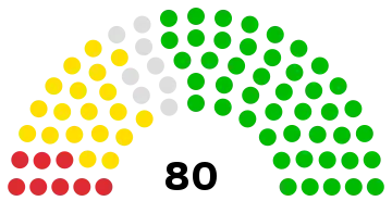 Last election 40 seats, 47.1% 34 seats, 43.1% 5 seats, 8.4%[lower-alpha 1]