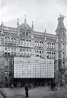 The results of the 1919 general election displayed outside The Press Building in Christchurch