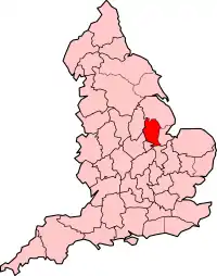 The administrative county of Kesteven (1889–1974), shown within England.