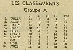 | 1 | AS Saint Eugène (C) | 22 | 8 | 13 | 1 | 43 | 24 | +19 | 51 | Qualified for North African Championship |