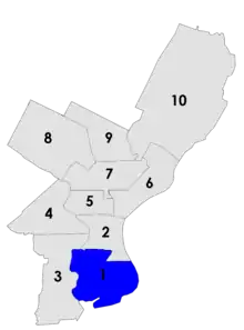 Voters in the 1st district also voted for city council in 1957 in a special election called after the death of Councilman Thomas I. Guerin the year before. Democratic ward leaders in the district, which covered most of South Philadelphia, nominated Emanuel Weinberg, leader of the 39th ward and a former state Deputy Secretary of Insurance. The nomination was not without controversy: Governor George M. Leader had fired Weinberg along with several other political appointees who were found, as The Philadelphia Inquirer reported, to have "enjoyed immunity from supervision and control and were permitted to pursue their private enterprises in addition to their State duties."[16]