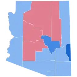 Key to Goldwater’s victory was Maricopa County, the state’s most populous county, which he carried by over 21,000 votes, despite Johnson carrying 10 out of 14 counties and two out of three congressional districts. As of 2020, this is the last time that Graham, Mohave, and Yuma Counties have supported a Democratic presidential candidate.[2][3] This marked the first time that Mohave County voted for the statewide loser.