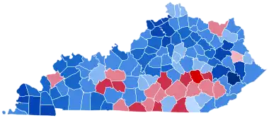 This is the solitary occasion since the Civil War where the Unionist strongholds of Whitley County and Knox County[5] have voted for a Democratic presidential candidate.[6] As of the 2020 presidential election, this is the last election in which the following counties voted for a Democratic presidential candidate: Kenton, Boone, Campbell, Oldham, Jessamine, Wayne, Whitley, Estill, Garrard, Green, and Lee.[7] This is also the sole occasion since 1936 that a Republican presidential nominee has failed to win more than 40% of the vote in Kentucky, and the only occasion since 1876 that the Democrat has won more than 60%. This is also the last time a Democratic presidential candidate won the state by double digits.