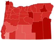 While Hatfield did not back away from his war stance, he sought to focus his campaign on other issues, chiefly focusing on the Johnson administration's economic policies that, in Hatfield's view, had created a recession that was creating unemployment in Oregon's timber industry.[3][17] As the election neared in early fall, Hatfield had pulled even with Duncan with momentum on his side.[17] Hatfield won in 27 of Oregon's 36 counties en route to a solid but narrow 52%-48% victory.[20][21] In his victory speech, Hatfield maintained that the vote was not a referendum on the war and that "neither Hanoi nor Washington should misread the results."[20]