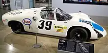 The most striking cars this year were the two Chaparrals. The new model 2F had a high-mounted adjustable wing pushing down on the rear wheels. It was now fitted with a Chevrolet big-block 427 cu in (7-litre) that produced over 550 bhp through a three-speed automatic transmission.[11][9] Previous race-winner Phil Hill raced with Mike Spence with Bruce Jennings/Bob Johnson in the second car.