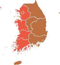 | Gyeonggi | 525,676 | (41.0%) | 674,964 | (52.6%) | 22,383 | (1.7%) | 23,248 | (1.8%) | 25,306 | (2.0%) | 11,029 | (0.9%) | 1,282,606 | ![]() |