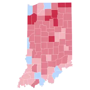 | Tippecanoe | 24,352 | 59.44% | 14,528 | 35.46% | 2,000 | 4.88% | 88 | 0.21% | 9,824 | 23.98% | 40,968 |