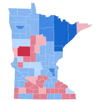 Until 2016, this was the last presidential election in Minnesota where any county was won with over seventy percent of the popular vote. In 2016, Donald Trump carried Morrison County with 73% of the vote, and Todd County with 70.75% of the vote. In this case, Humphrey won the following counties over this threshold: Carlton County, Lake County, and Saint Louis County. It was not until 2020 that Democrats received over 70% of the vote in a Minnesota county again.
