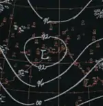 An upper air cyclonic circulation formed over East Pakistan and the adjoining Bay of Bengal on August 12 in the morning. A low-pressure area subsequently developed on that evening before strengthening to a depression on the next day. Meteorological analysis revealed that there was a fall in pressure at that time inland the Gangetic West Bengal and Orissa. While moving west-northwestwards, it rapidly intensified to a cyclonic storm near Chuksar Island, or south-southwest of Sagar Island. Sandheads reported winds of 95 km/h (60 mph) that day, well equivalent to a severe cyclonic storm in the modern-day NIO scale, while its pressure bottomed at 990 hPa (29.23 inHg) at 17:30 IST. Continuing its course, it crossed north Orissa near Balasore that night before weakening to a deep depression, about 100 kilometres to the south of Jamshedpur. As it changed its movement towards the northwest, it further weakened to a depression before degenerating to an area of low-pressure over northwest Madhya Pradesh and the adjoining southwest Uttar Pradesh on August 16 in the evening.[3]