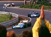 - ↑ Some older sources state that the stone was thrown up by Emerson Fittipaldi's Lotus, but more recent sources indicate that it was thrown up by Ronnie Peterson's March.