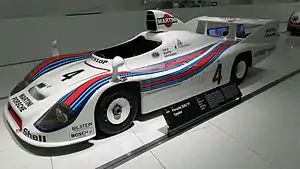 Defending winners, the Martini-Porsche works team, brought back the 936 for its only race of the season. The 2140cc engine with twin KKK (Kühnle, Kopp & Kausch) turbos had been enhanced with quads-cams and at 1.4bar of turbo boost now put out 580 bhp. Wound up to 1.7bar, it was a bit slower at top speed 345 kp/h (215 mph) but overall, with new aerodynamics, much faster around a complete lap. The extra engine power meant higher running temperatures and for the first time, Porsche had water-cooling, combined with its regular air-cooling.[3][4][5][6] The cars were also fitted with the same gearboxes the Can-Am Porsche 917s had used to handle the great engine power.[7] Once again, the endurance experts Jacky Ickx and Henri Pescarolo were paired up, and given the new car. Jürgen Barth had a new co-driver in Bob Wollek, driving the car that failed to finish last year fitted with the new engine. For Wollek, it was his first drive with the works team, after fulfilling a prior commitment with Kremer the year before.[6] Americans Hurley Haywood and Peter Gregg were given the winning car from 1976 and '77, still fitted with the twin-cam, single-turbo engine. Jochen Mass and Reinhold Joest were designated as reserve drivers.[4][5]