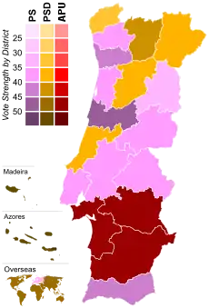 - 1 2 The Portuguese Communist Party (41 MPs) and Portuguese Democratic Movement (3 MPs) ran in coalition.