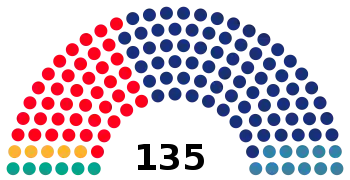 Last election 43 seats, 27.8% 33 seats, 22.4% 0 seats, 2.4%[lower-alpha 1]