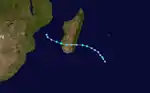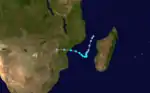 On December 23, a tropical depression formed in the Mozambique Channel, accompanied by spiral rainbands toward the center.[7] That day, the system reached peak winds of 65 km/h (40 mph),[8] and the Madagascar Meteorological Service named it Alifredy. The storm moved quickly southeastward toward Madagascar. High pressures to the south prevented much development, and Alifredy moved ashore near Morondava in western Madagascar on December 24 at peak intensity. While crossing the island, the storm weakened into a tropical depression. Alifredy emerged into the open Indian Ocean and failed to restrengthen. It became extratropical and turned southeastward, dissipating on December 27 within the westerlies.[7][8] The JTWC did not track the storm.[2] Alifredy had little impacts on Madagascar; Morombe reported a peak wind gust of 56 km/h (35 mph).[7]