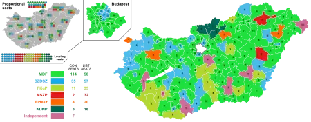 - ↑ Including 2 deputies elected as joint Fidesz–SZDSZ candidates and one deputy elected as a joint Fidesz–KDNP–SZDSZ candidate.