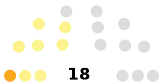 Party Seats Gains Losses Net gain/loss Seats % Votes % Votes +/−