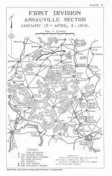 This article incorporates text from this source, which is in the public domain. - ↑ The United States Army Medical Department in the World War, Volume VIII: Field Operations, Washington, DC: USGPO 1925, page 292.