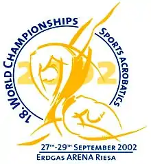 18th World Sports Acrobatics Championships were held in Riesa, Germany from September 27 to September 29, 2002, at the Erdgas Arena.
