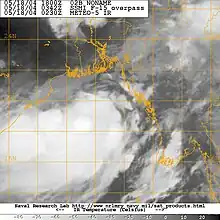 ![]() Satellite image of the cyclone offshore Myanmar | |
