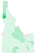 Crapo won every county with over 90% of the vote. His weakest performance by far was in Democratic-leaning Latah County, where he got 95.6% of the vote to McClure's 4.4%.