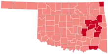 | Muskogee | 15,124 | 54.58% | 12,585 | 45.42% | 2,539 | 9.16% | 27,709 |