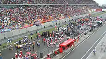 The 2007 Chinese Grand Prix (officially the 2007 Formula 1 Sinopec Chinese Grand Prix)[1] was the sixteenth race of the 2007 FIA Formula One World Championship. It was held on 7 October 2007 at Shanghai International Circuit, Shanghai, China. The race was won by Ferrari's Kimi Räikkönen with Fernando Alonso finishing second and Felipe Massa finishing third. Championship leader Lewis Hamilton suffered the first race retirement of his Formula One career after going off at a wet pit entrance on worn tyres left him stuck in the gravel. Räikkönen's win marked the 200th Grand Prix victory for Scuderia Ferrari.